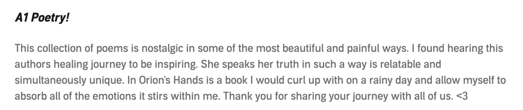 Thrilled to announce that In Orion’s Hands is now available through Audible! This was one of the hardest books I’ve ever written. It’s raw and emotional and the most honest and vulnerable thing I’ve ever written. Having anyone read it was terrifying and now I’m asking the world to. The audiobook is available for $6 and the paperback is visual and completely different in a lovely way.